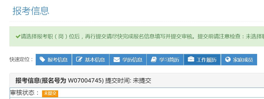 依次填写学历信息、学习简历、工作履历、家庭成员情况,核对无误并提交即可。