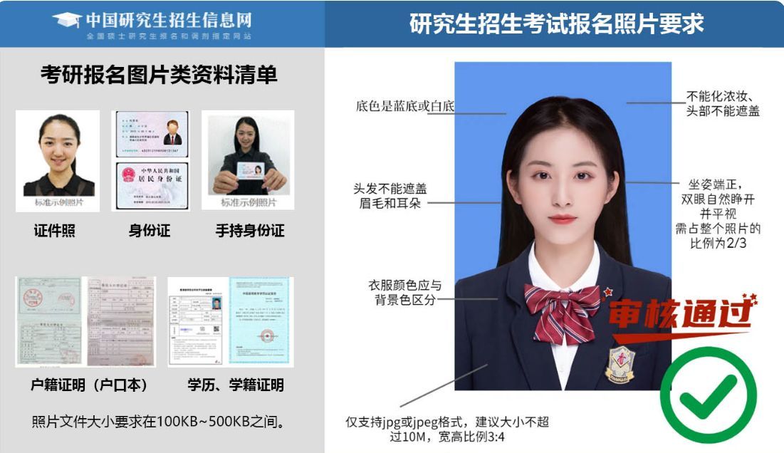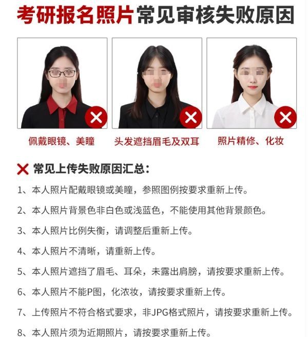 以上就是关于研究生考试报名证件照的相关知识点了,相信只要认真阅读遵照执行,一定可以顺利通过报名,节约宝贵的复习时间!这里也祝各位同学今年考研顺利,早日上岸。