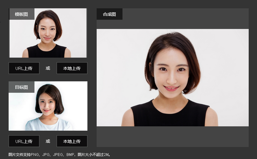这是一个免费的在线人脸融合工具,可以提取两张人脸特征,合成一个介于两者之间的新的人脸。