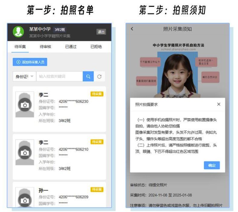 针对学生数量多、时间紧、校外拍摄成本高等问题,推荐使用学籍平台认证的校园证件照采集系统,实现班主任自助化批量拍摄。