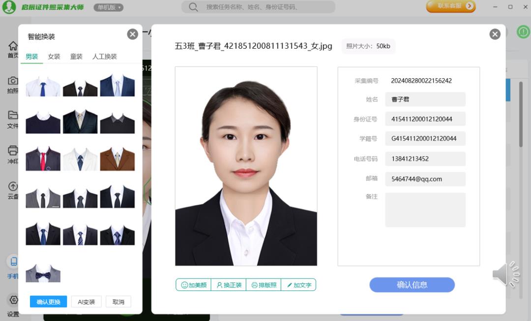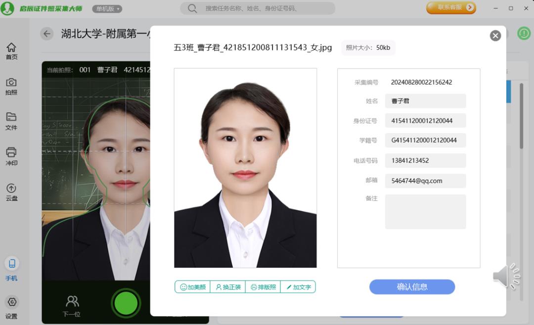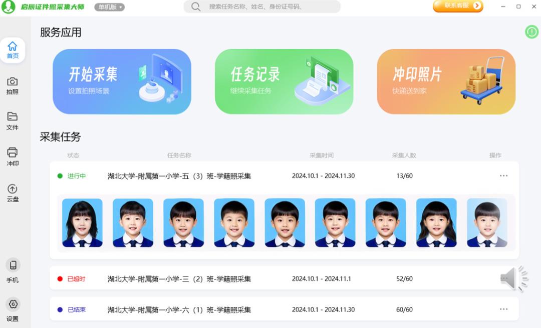 启辰证件照采集大师是一款专为机构批量采集证件照设计的智能化软件解决方案,集高效采集、智能管理、多场景适配于一体,可满足学校、政务机构、医疗机构、企业等不同场景下的标准化证件照采集需求。软件通过模块化设计实现全流程自动化管理,显著提升采集效率与数据准确性。