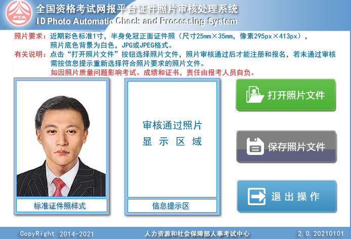 照片要求: 照片必须通过照片处理工具审核通过,审核通过的照片大小在10K左右。